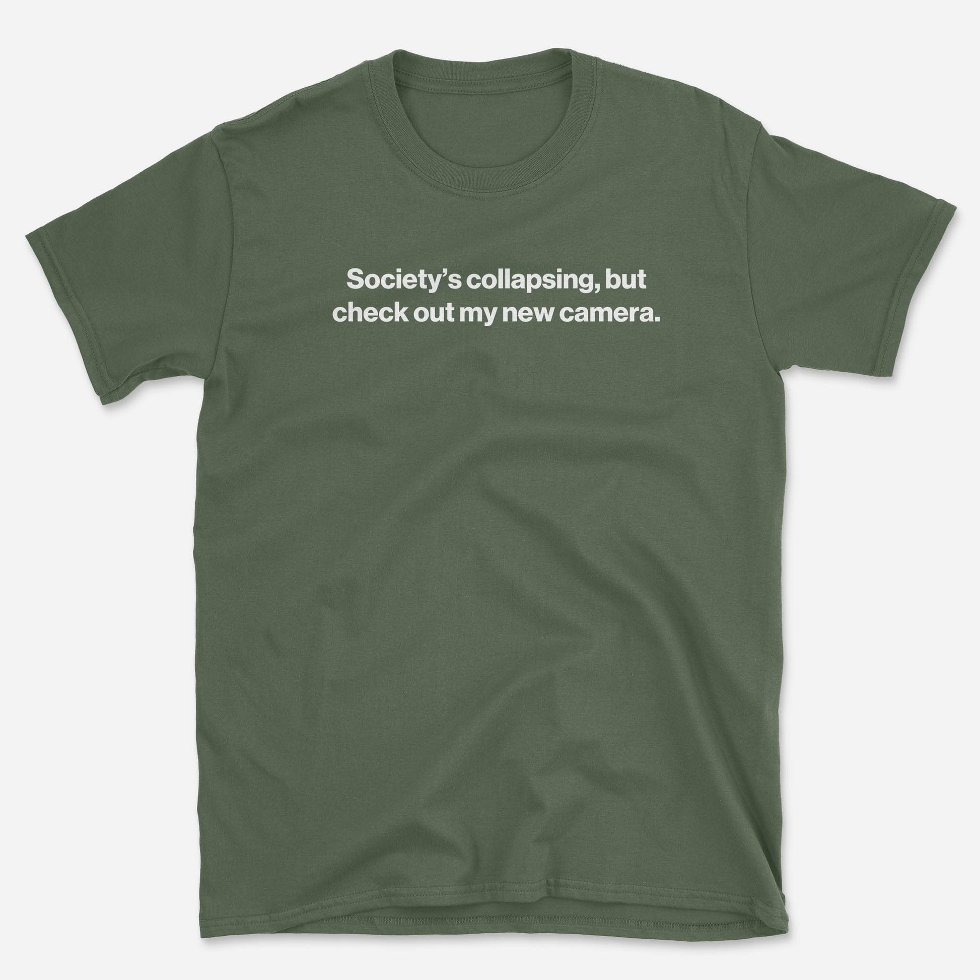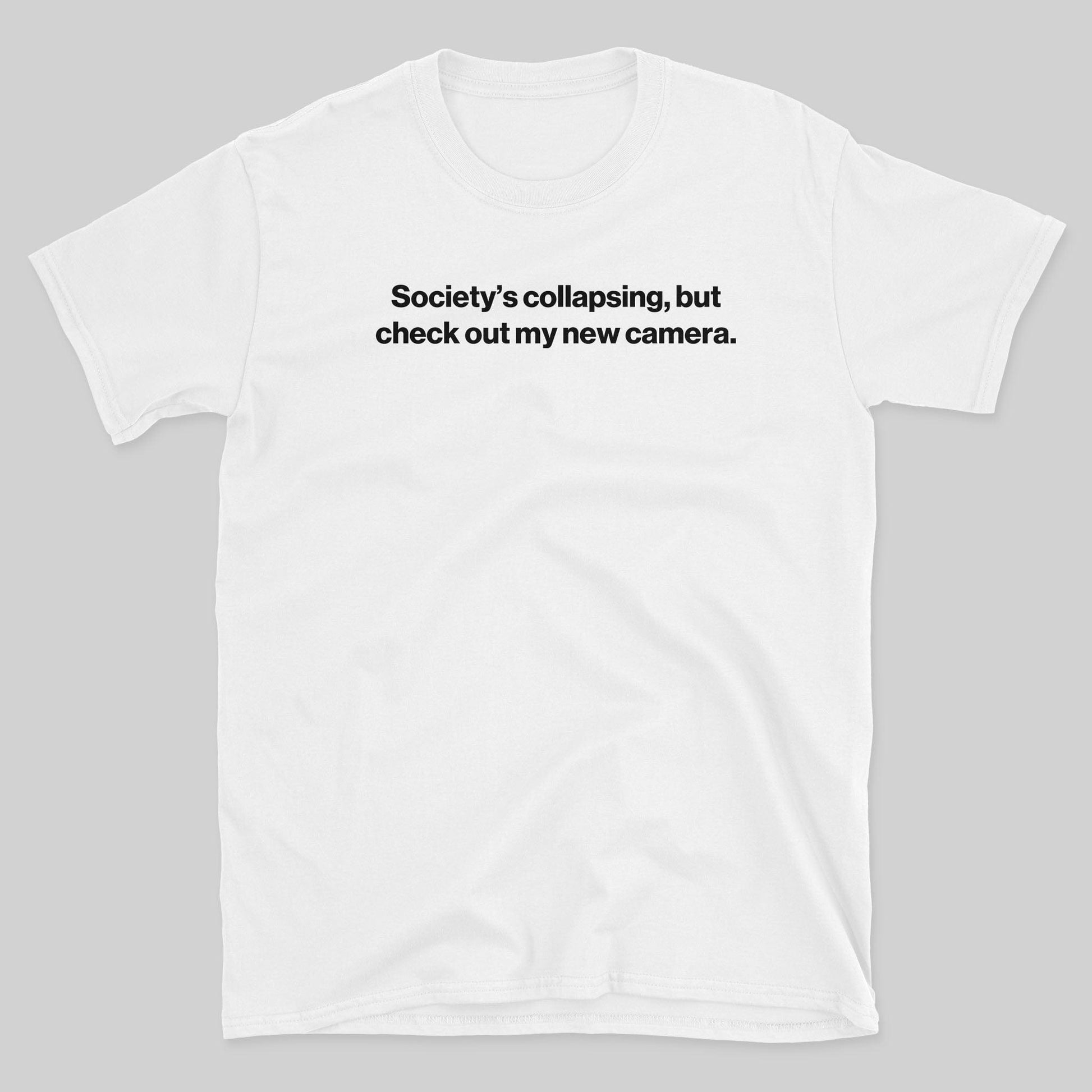 Dark humor meets camera gear obsession — our “Collapse” tee is for the shutterbugs who find solace in sharp focus and new toys, even as the world crumbles. Equal parts existential and enthusiastic, it's a vibe… and a coping mechanism. 📸😅
