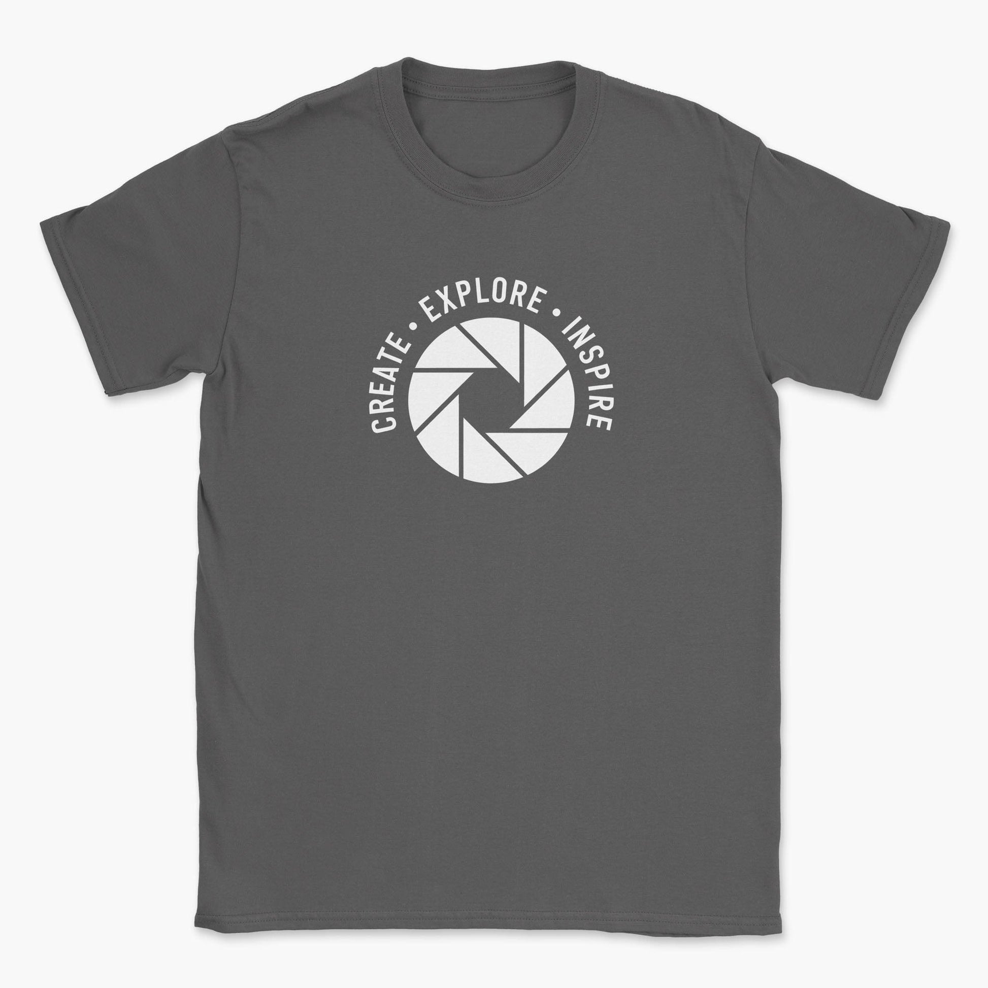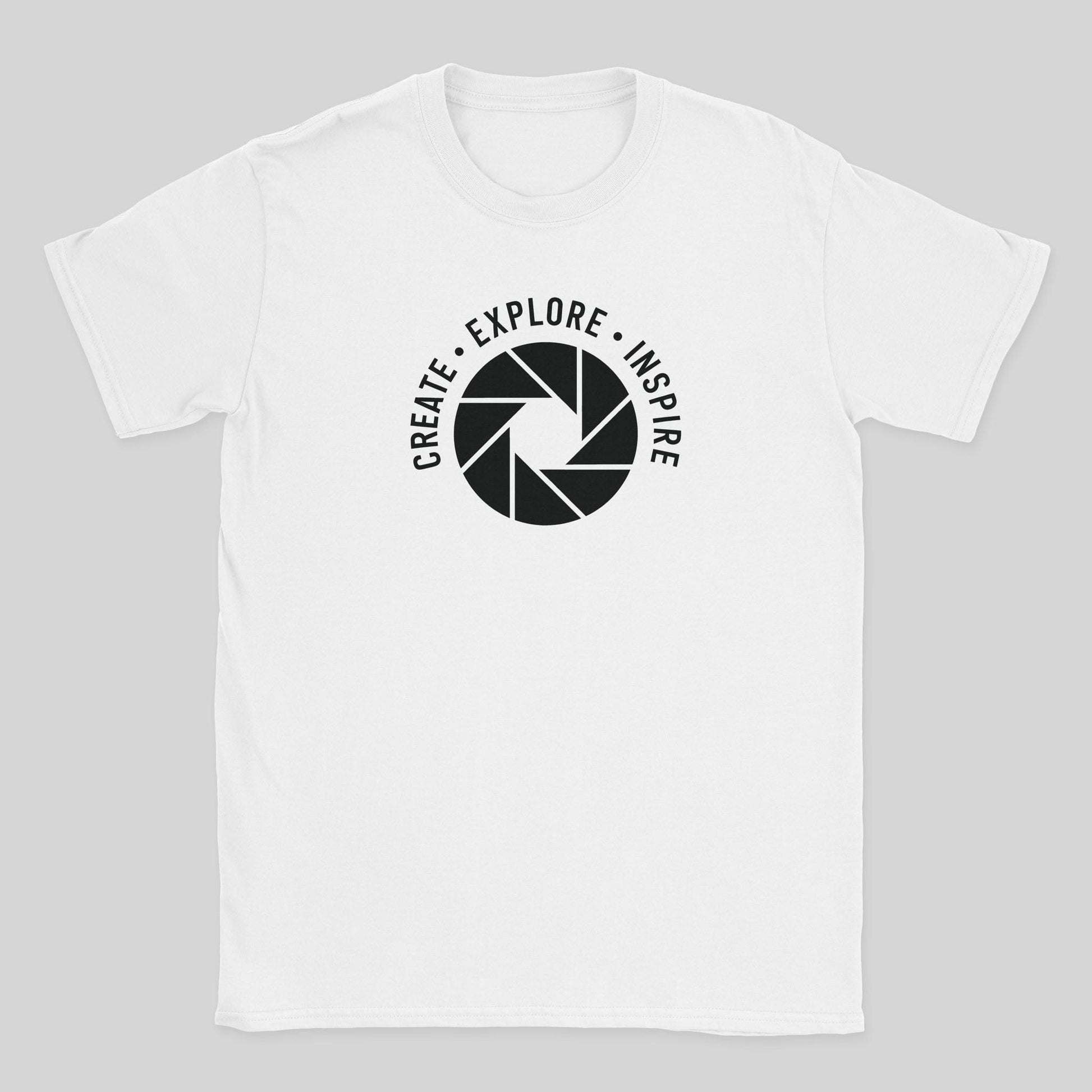 A mantra for every shutter-happy soul: “Create • Explore • Inspire” is more than a motto—it’s your daily exposure triangle. Perfect for creators who find magic in the mundane and stories in the shadows 📷✨