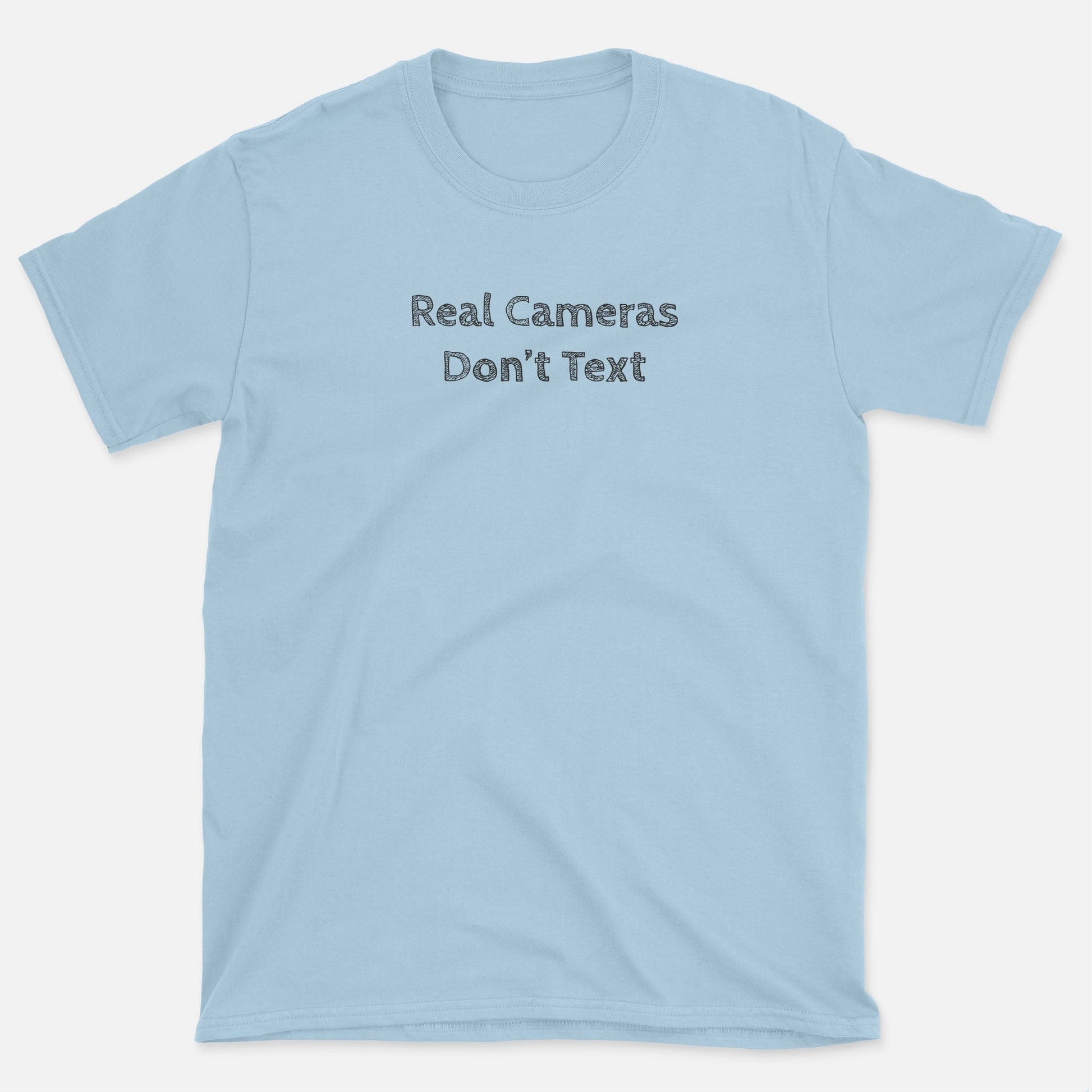 Make your stance clear with our Real Cameras Don’t Text tee. With a playful distressed typeface, it’s perfect for photographers who value shutter clicks over screen swipes and love keeping their focus on the moment 📸😉