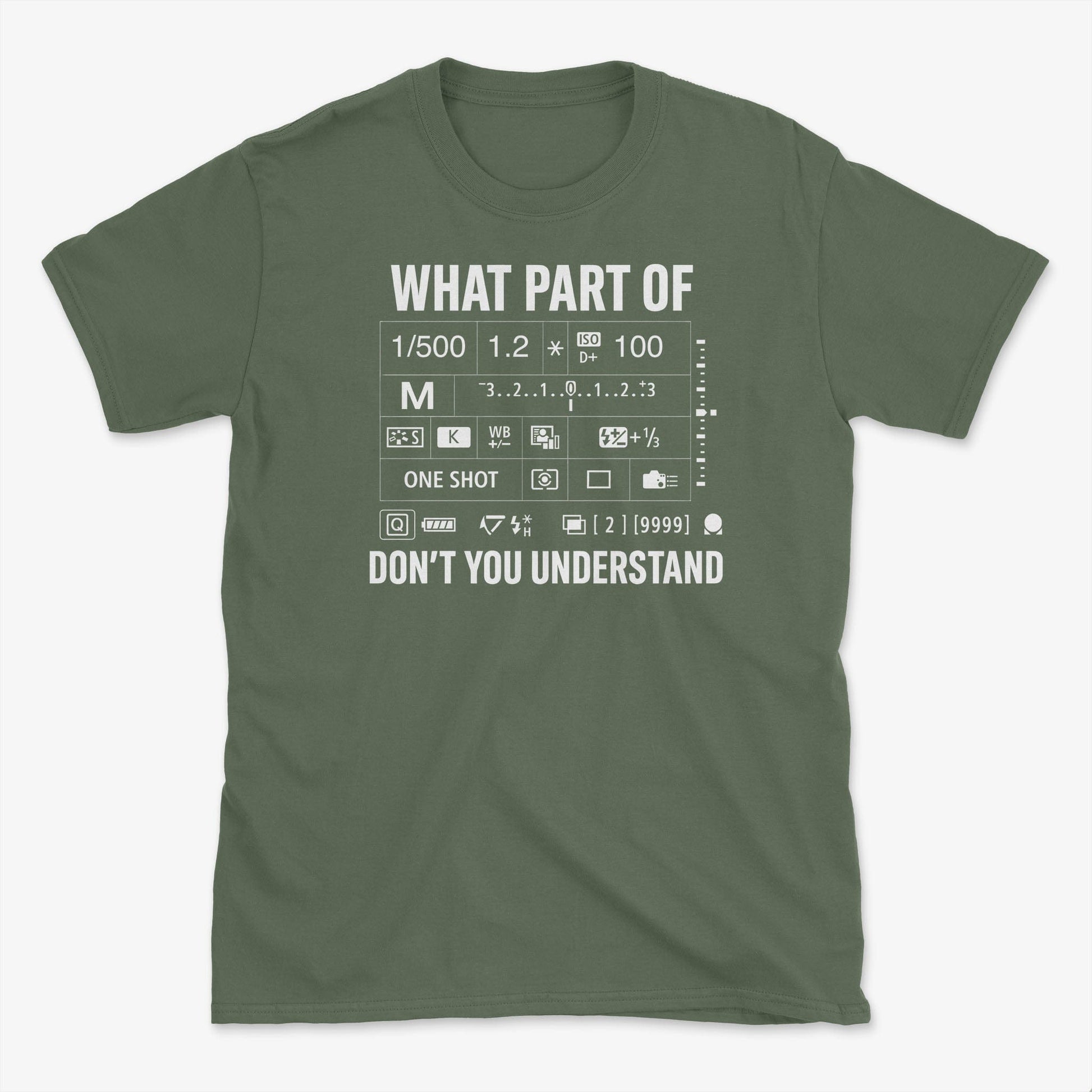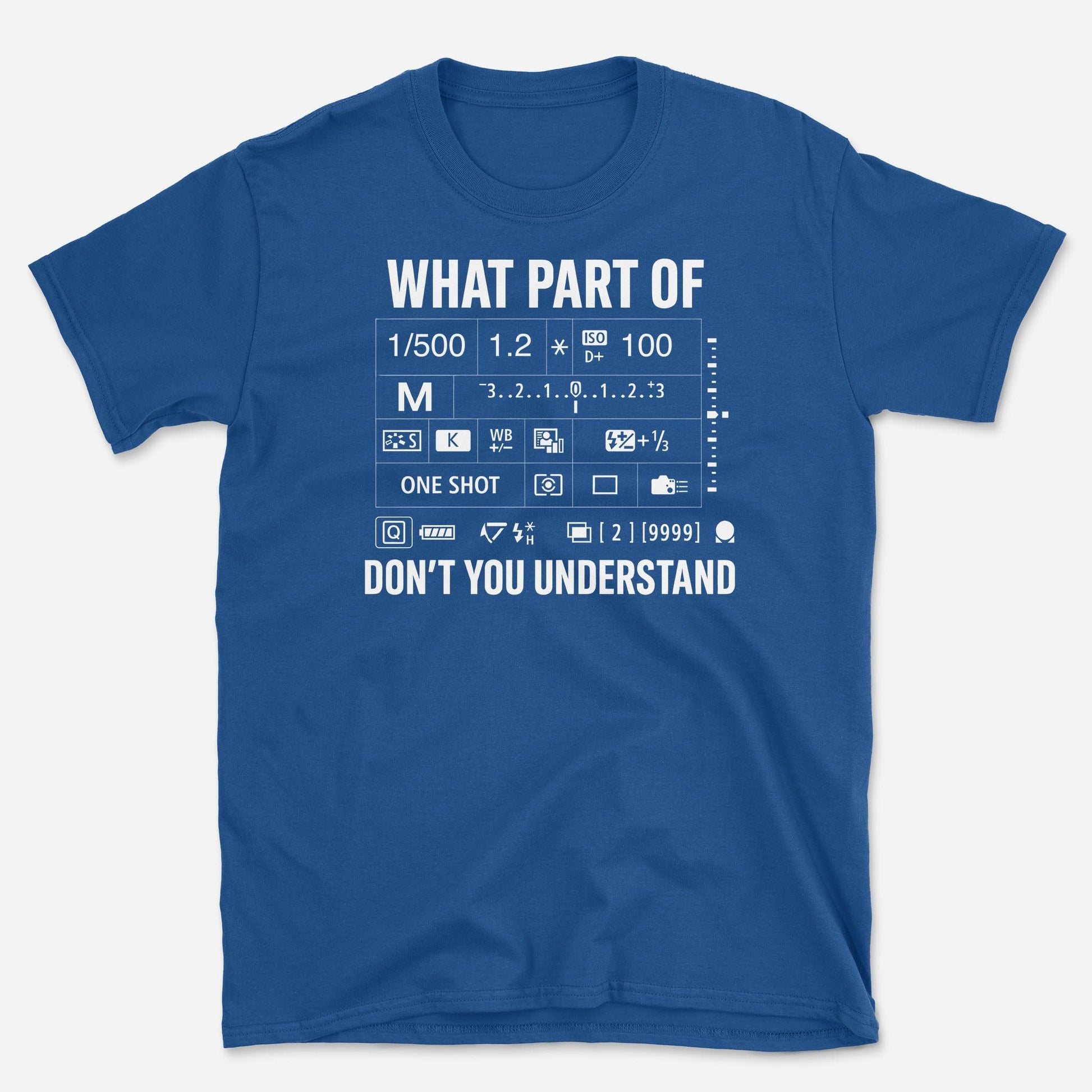 The Don't You Understand tee is for photographers who speak fluent manual mode. Packed with iconic camera settings, this shirt is a cheeky flex for anyone who’s ever had to explain exposure to a non-shooter. If you know, you know—and if you don’t… well, this shirt says it all. ⚙️📸