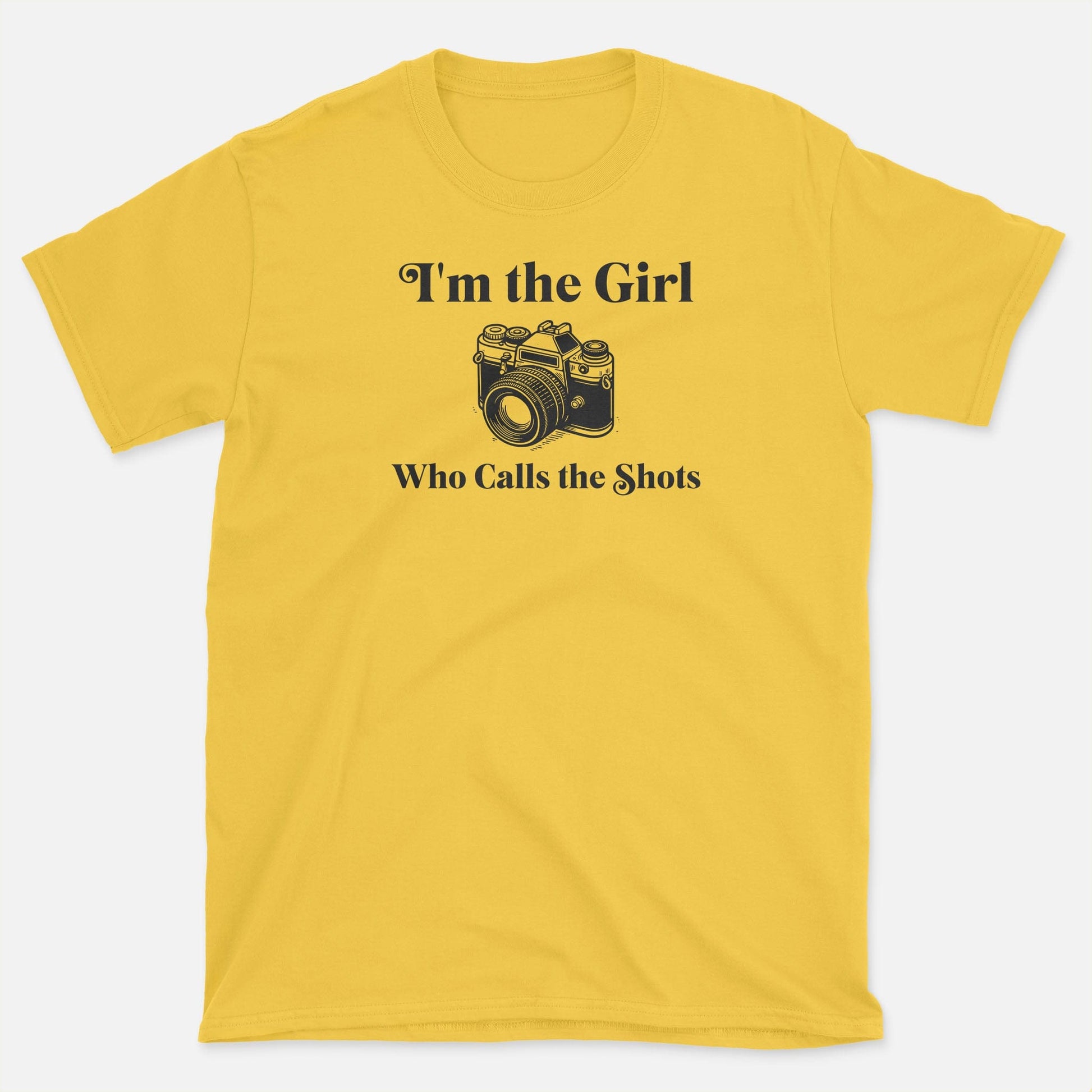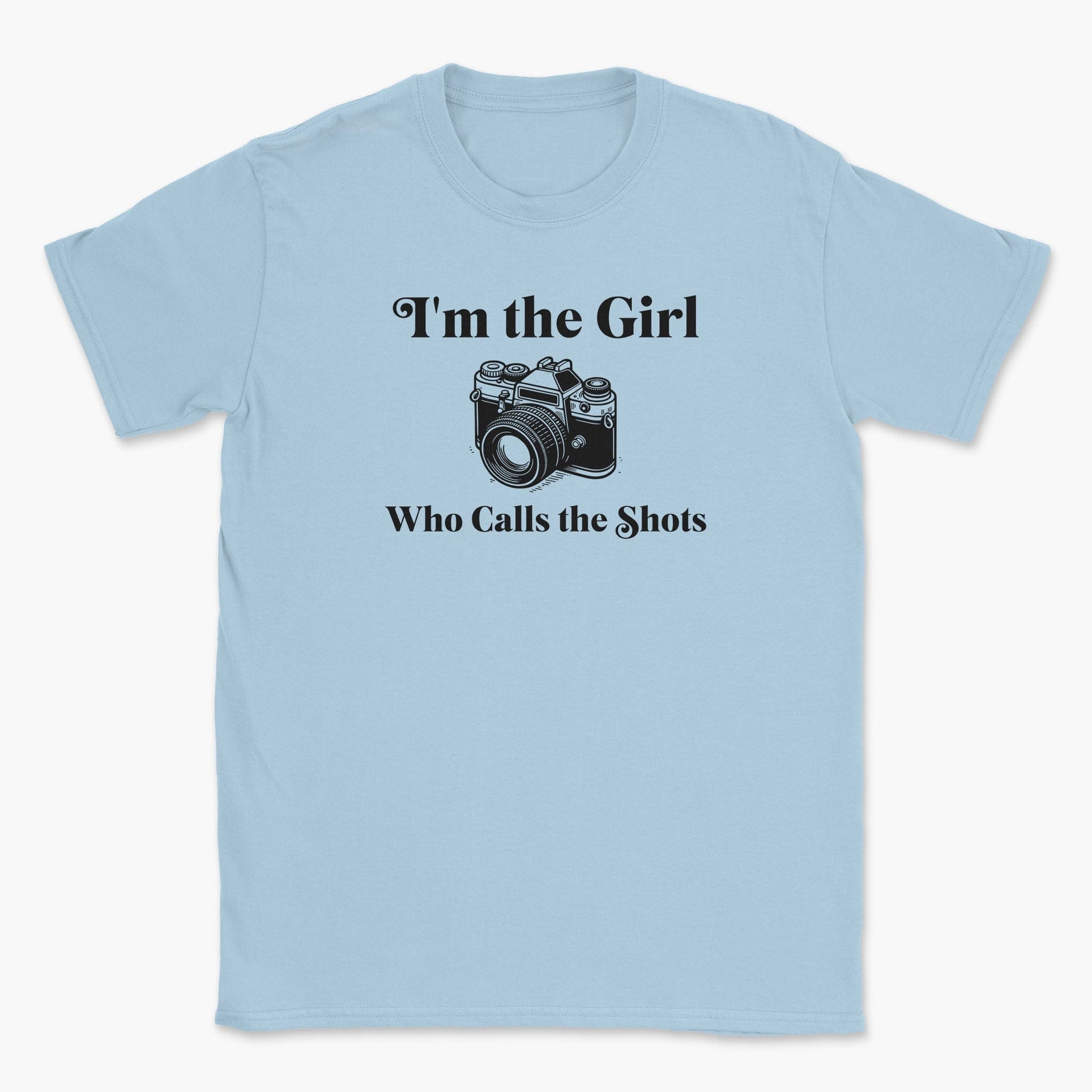 For the girl behind the lens and in charge of the whole shoot—this tee says it all. “I'm the Girl Who Calls the Shots” is a bold, witty nod to photographers who take control and snap with confidence 📸✨