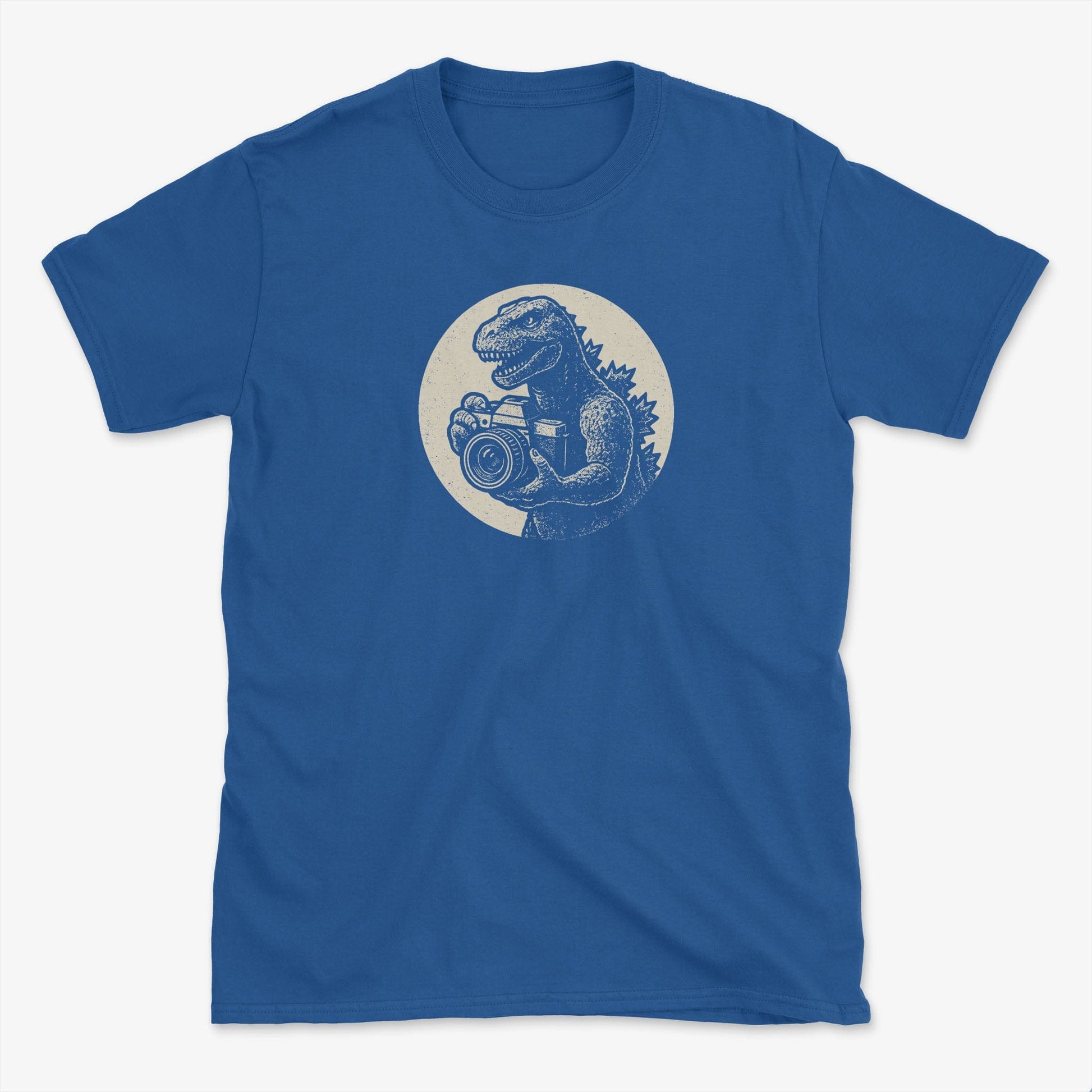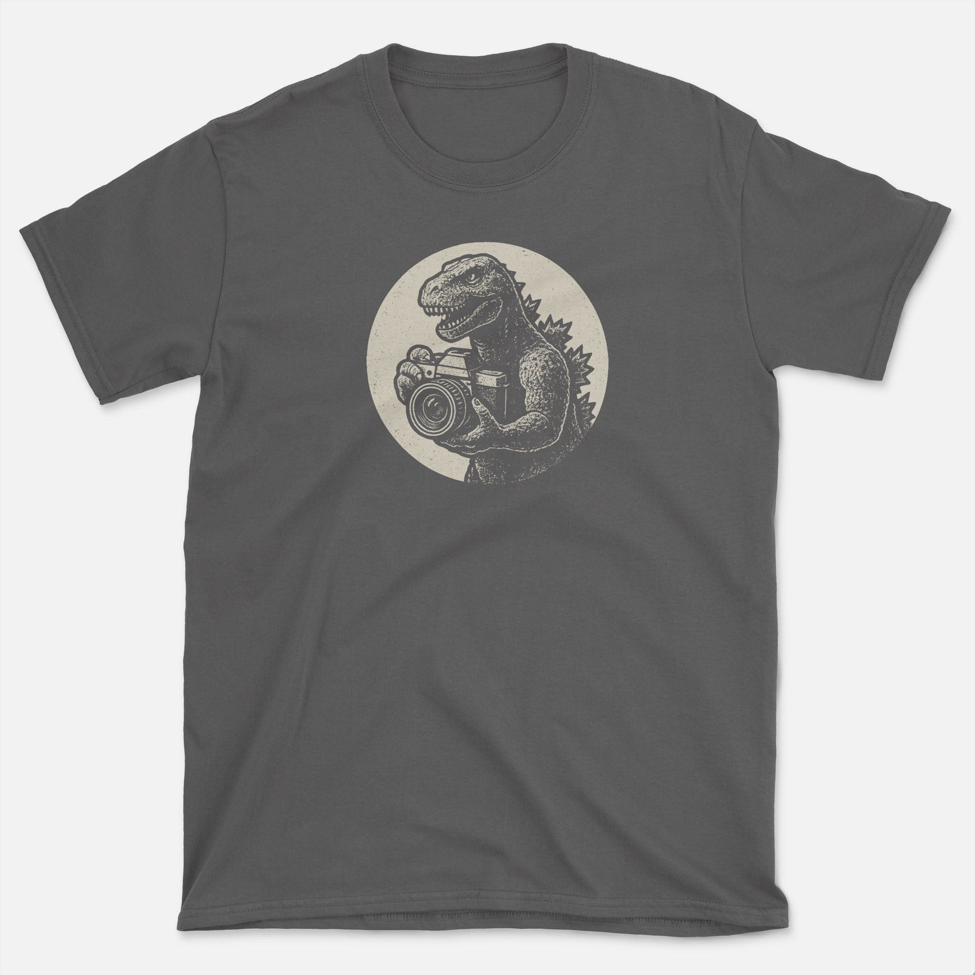 Strike a pose—or a city block. The Monster T-Shirt brings you the king of kaiju with a love for capturing moments (not just mayhem). Featuring a dino-sized shutterbug holding a vintage camera, this tee is perfect for photographers who like their shots earth-shakingly good. 📸🦖