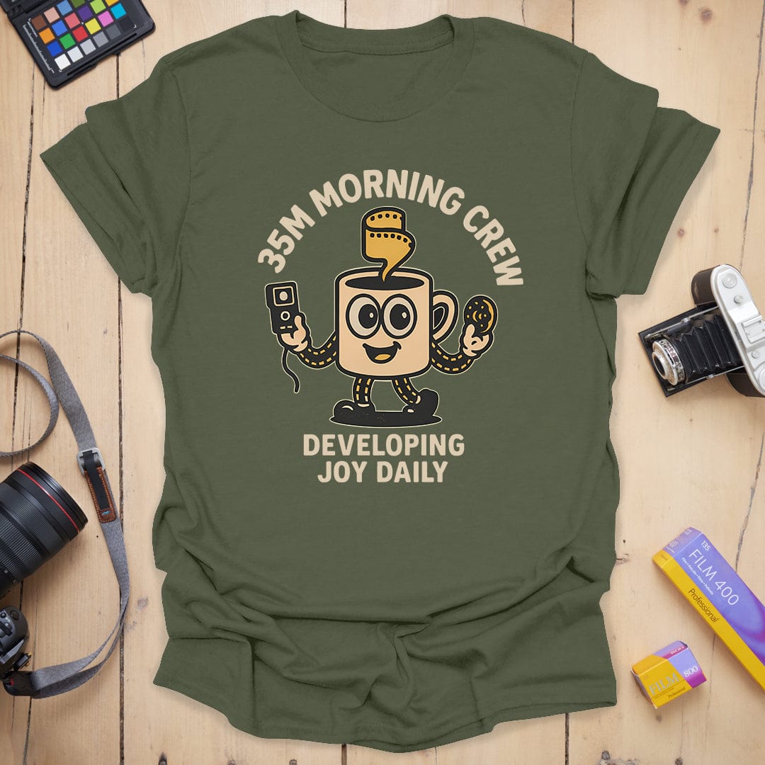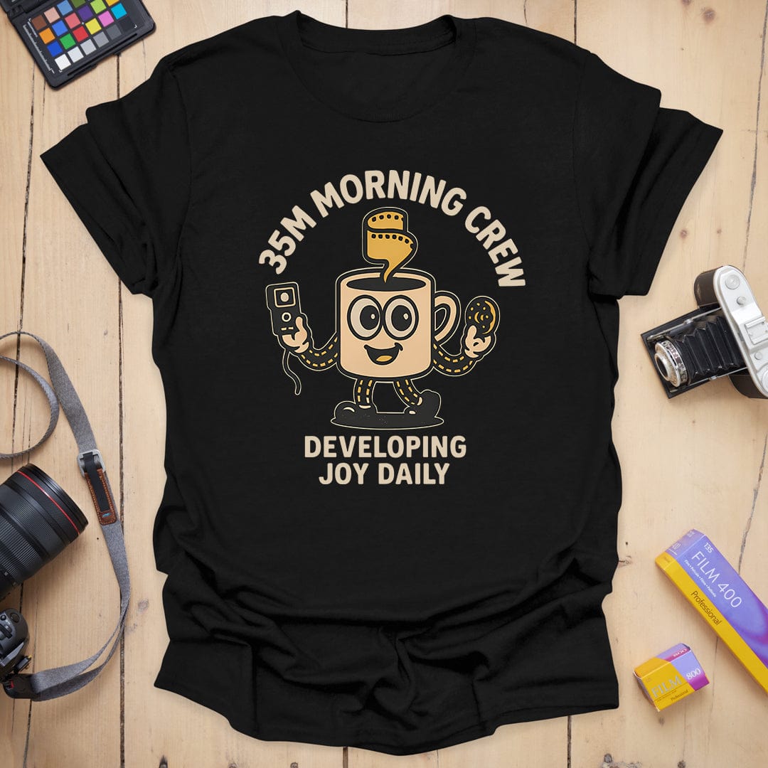 For the caffeine-fueled creatives who shoot, sip, and snack their way through the sunrise—our “Morning Crew” tee is your official uniform. Celebrate that 35mm magic while developing joy (and film) daily 📷🍩