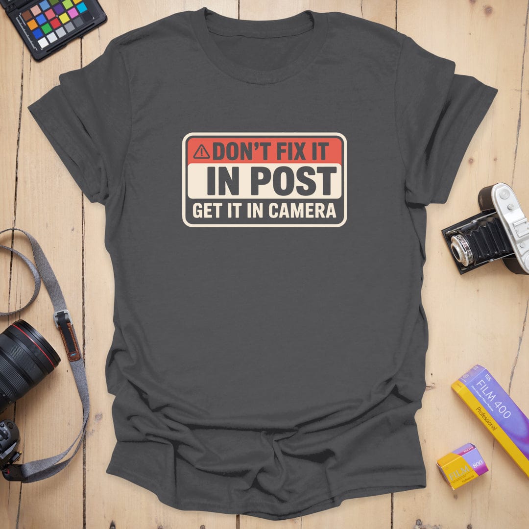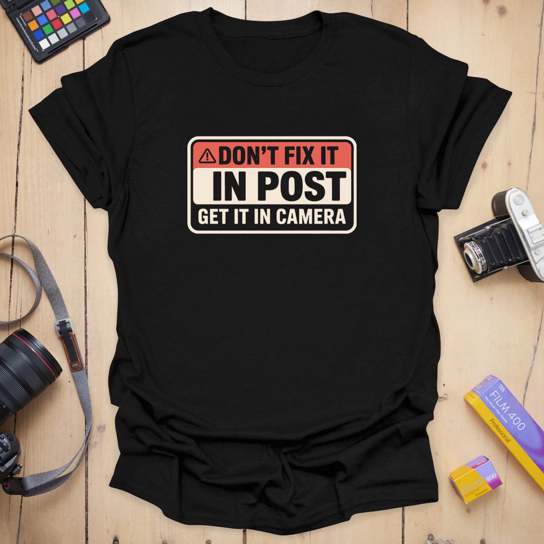 For the on-set perfectionists who know there's no substitute for getting it right in camera—this “Post Production Warning” tee is your bold badge of honor. Because fixing it in post is not a lighting strategy 🚫📷