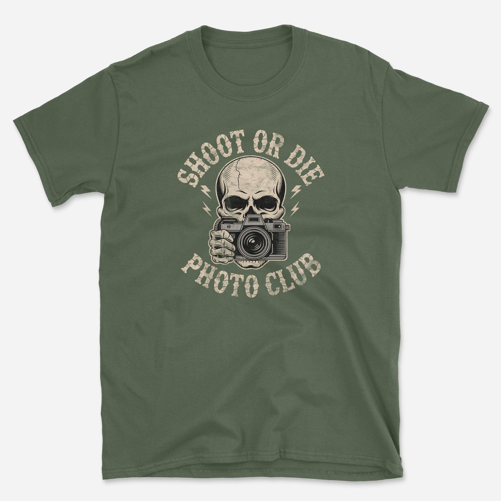Join the most fearless crew behind the lens with the Shoot or Die T-Shirt. Featuring a bold skull-and-camera design with a gritty, distressed finish, this tee is for those who live and breathe photography—no filters, no fear. 📸💀